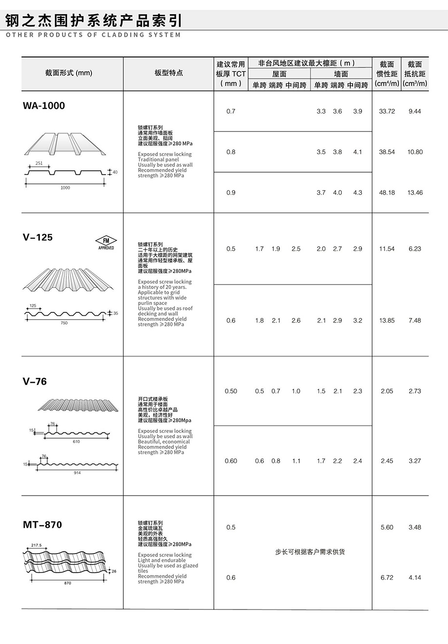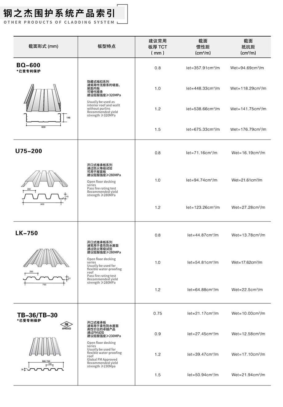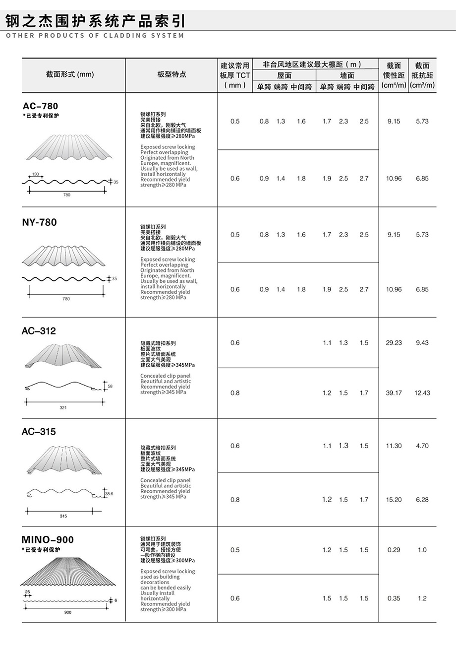 領(lǐng)先的預(yù)制金屬屋(墻)面和樓承板系統(tǒng)產(chǎn)品索引