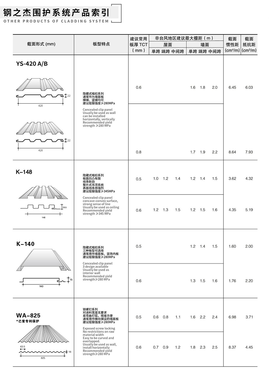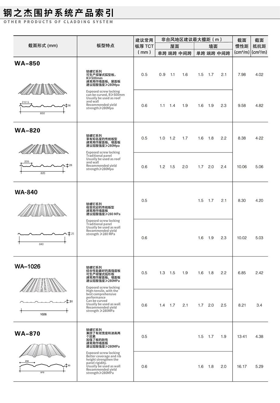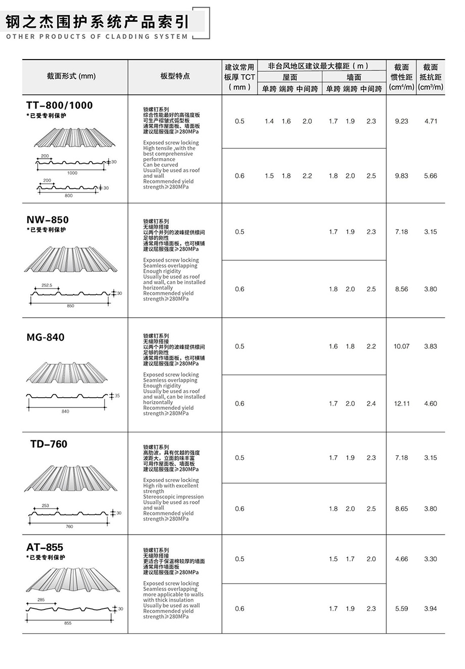 領(lǐng)先的預(yù)制金屬屋(墻)面和樓承板系統(tǒng)產(chǎn)品索引