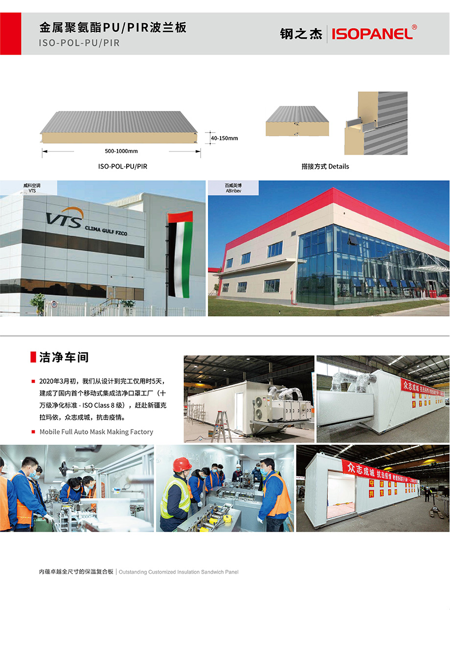 金屬聚氨酯PU/PIR復(fù)合屋面板、墻面板及波蘭板